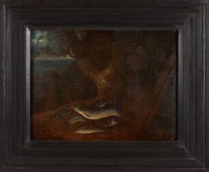 JACOB GILLIG 1636 – 1701 martwa natura z rybami na tle pejzażu lub jego krąg