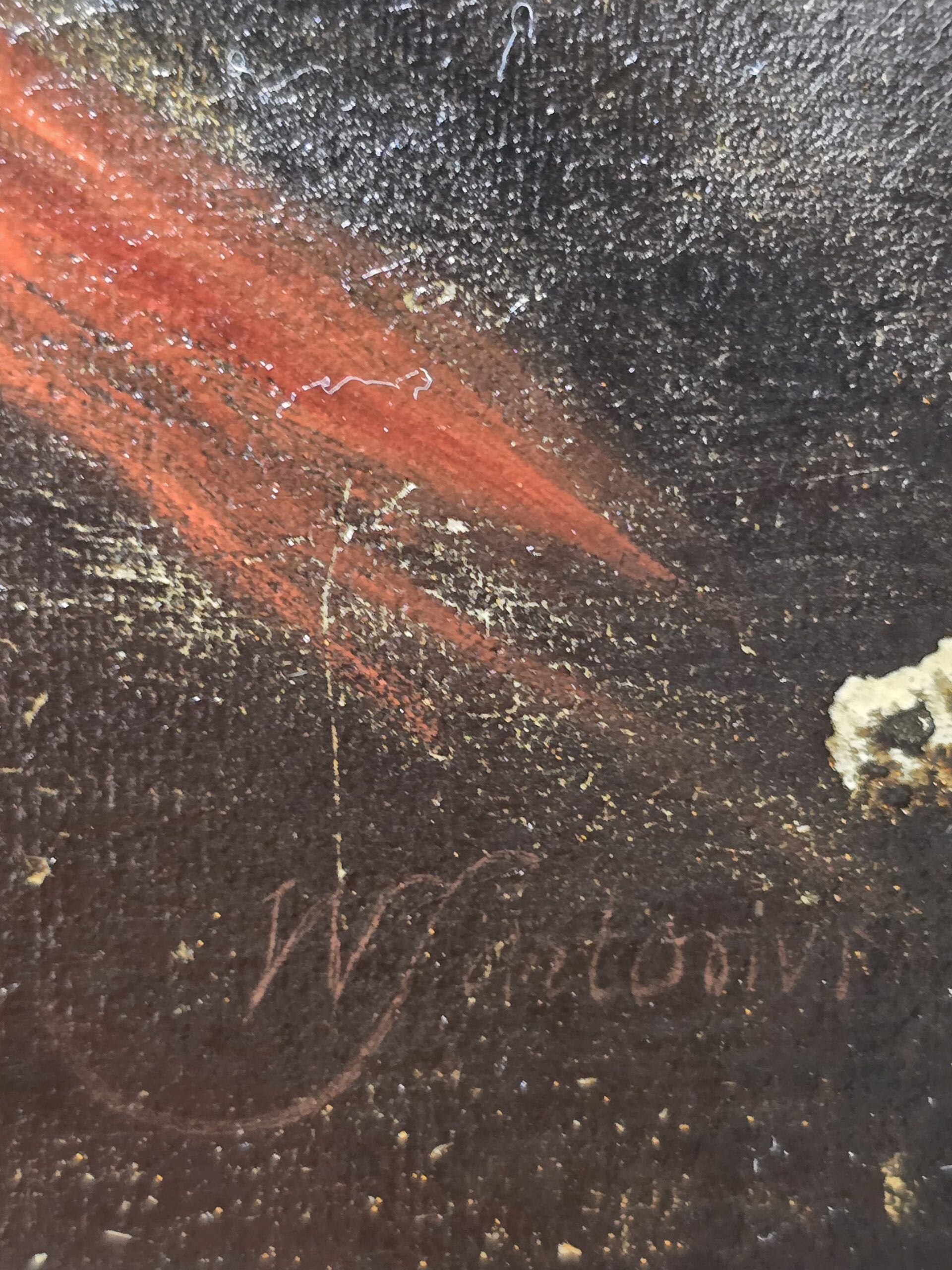 Sygnatura: Widoczna na zdjęciu, na blejtramie liczne nalepki zapewne aukcyjne lub inwentarzowe