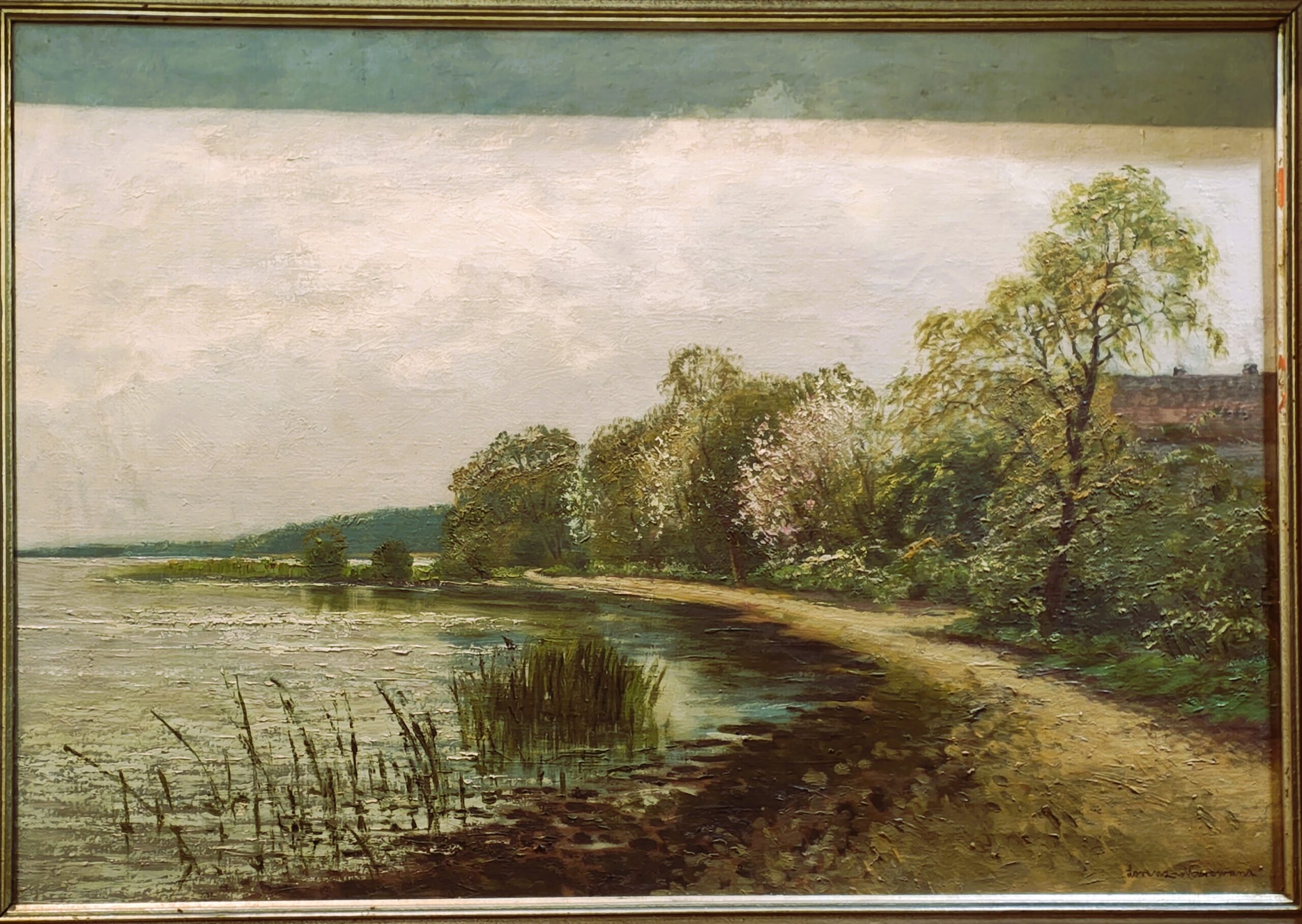 A large part of his work is oil painting, the subjects of the paintings were interiors and still lifes, but the most common motive presented was the seascapes of Pomerania and the Baltic Sea, as well as the idyllic landscapes of Brandenburg. Much less often he immortalized the veduta and the urban landscape of Berlin and Potsdam, where rivers or water reservoirs are visible in the foreground, often they were nocturnes.