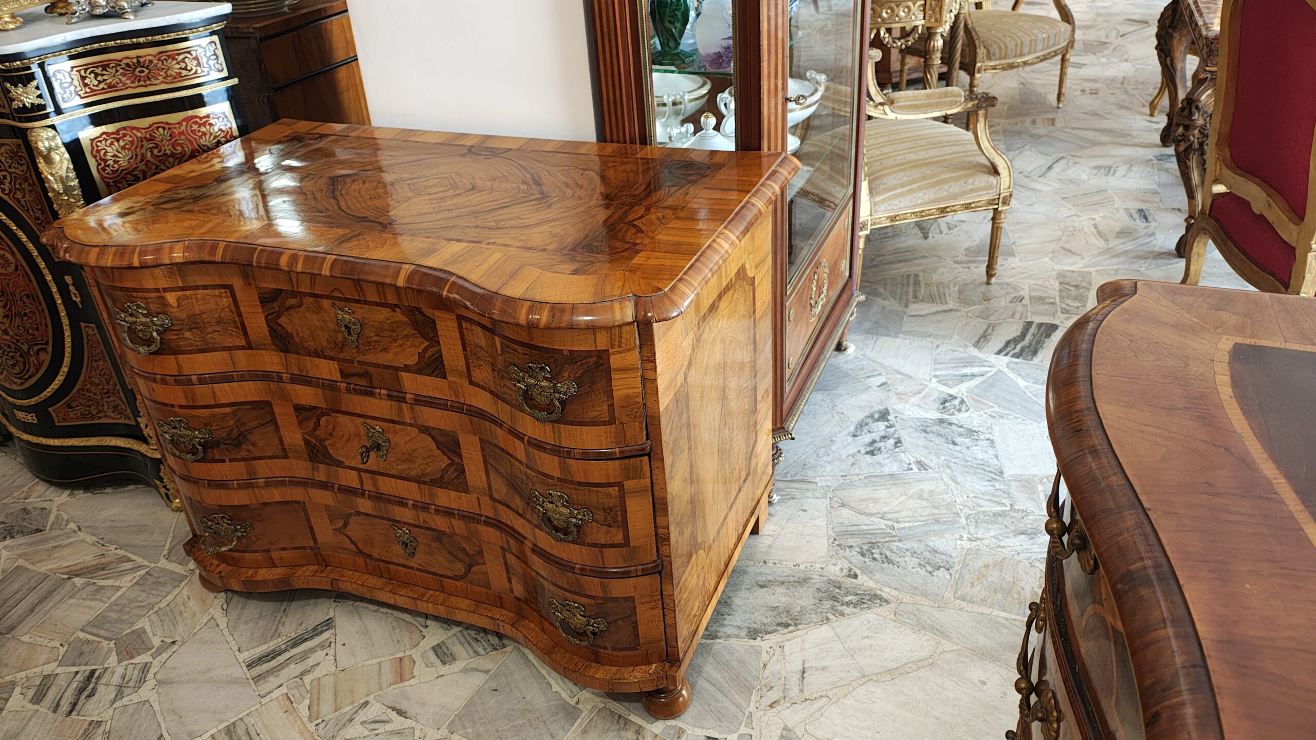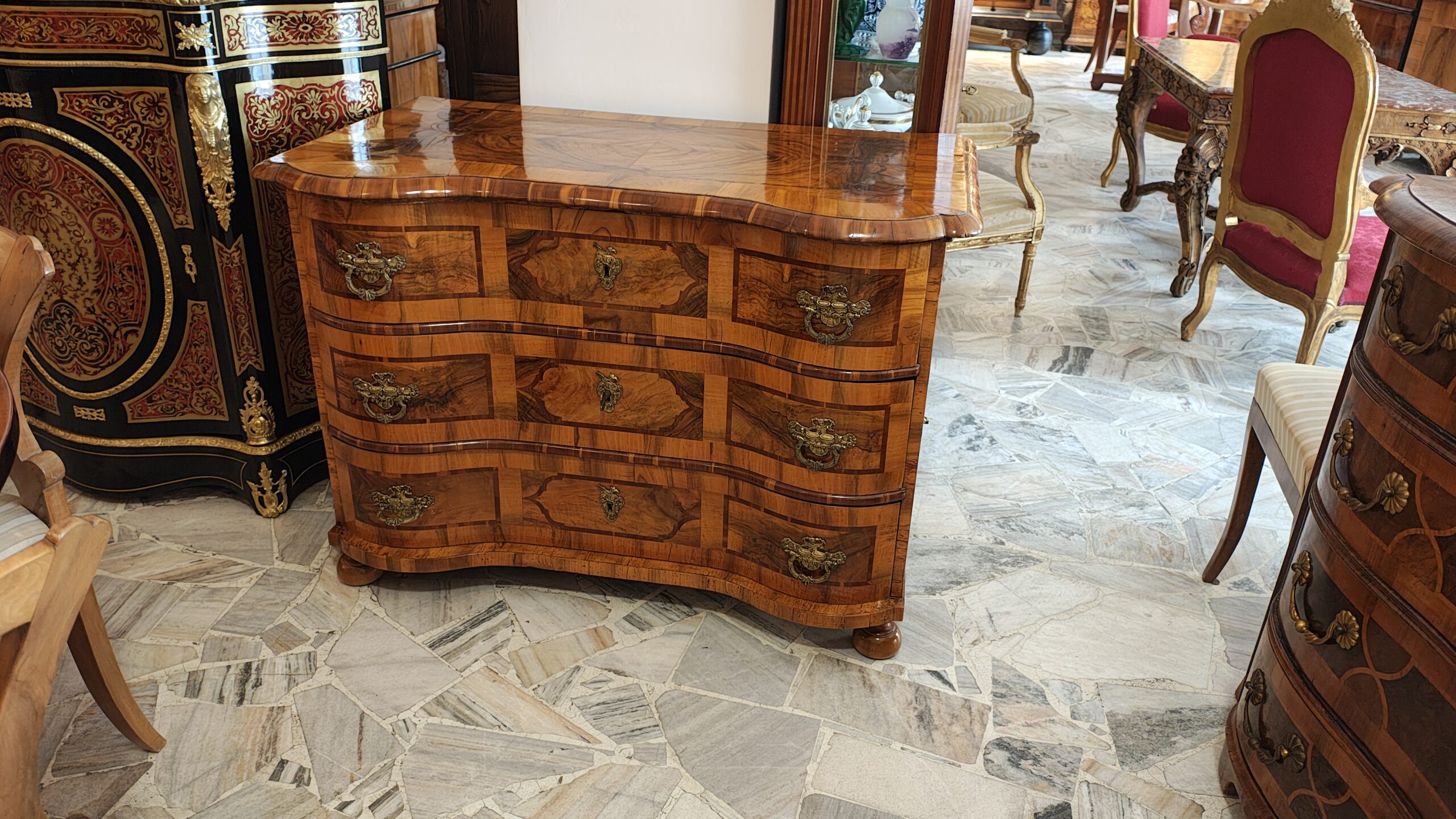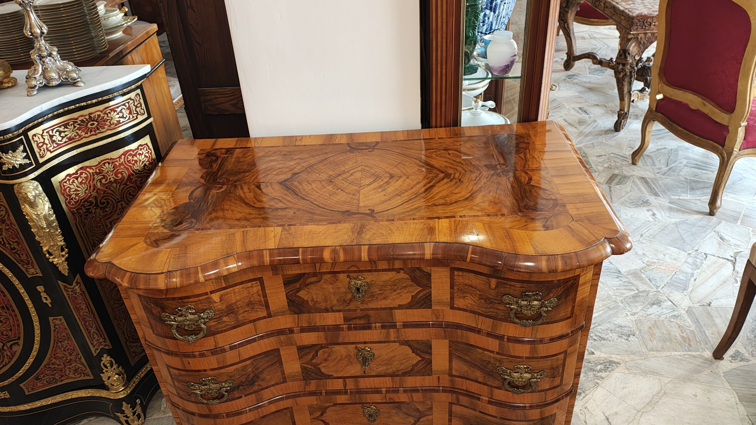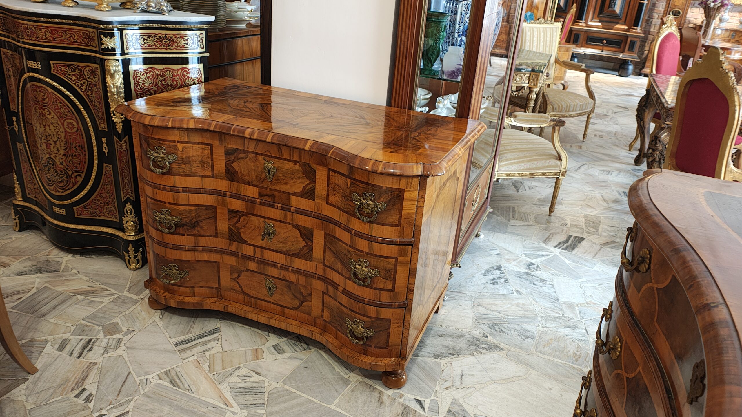 Typowa pod względem formy i dekoracji komoda barokowa. Wykonana rzemieślniczo