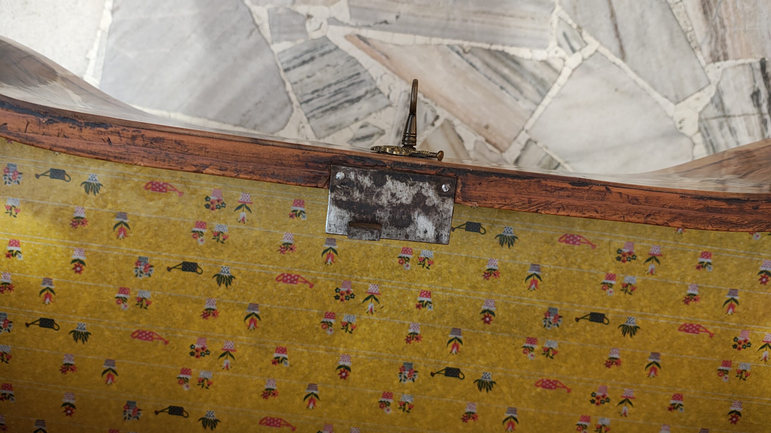 Materiał: sosna; fornir- orzech, drewna owocowe; zamki stalowe, nakładane, jednoryglowe