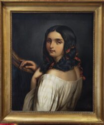 Portret młodej damy w czerwonej sukni XIX w około 1820/30 r z dworu Kluvensiek