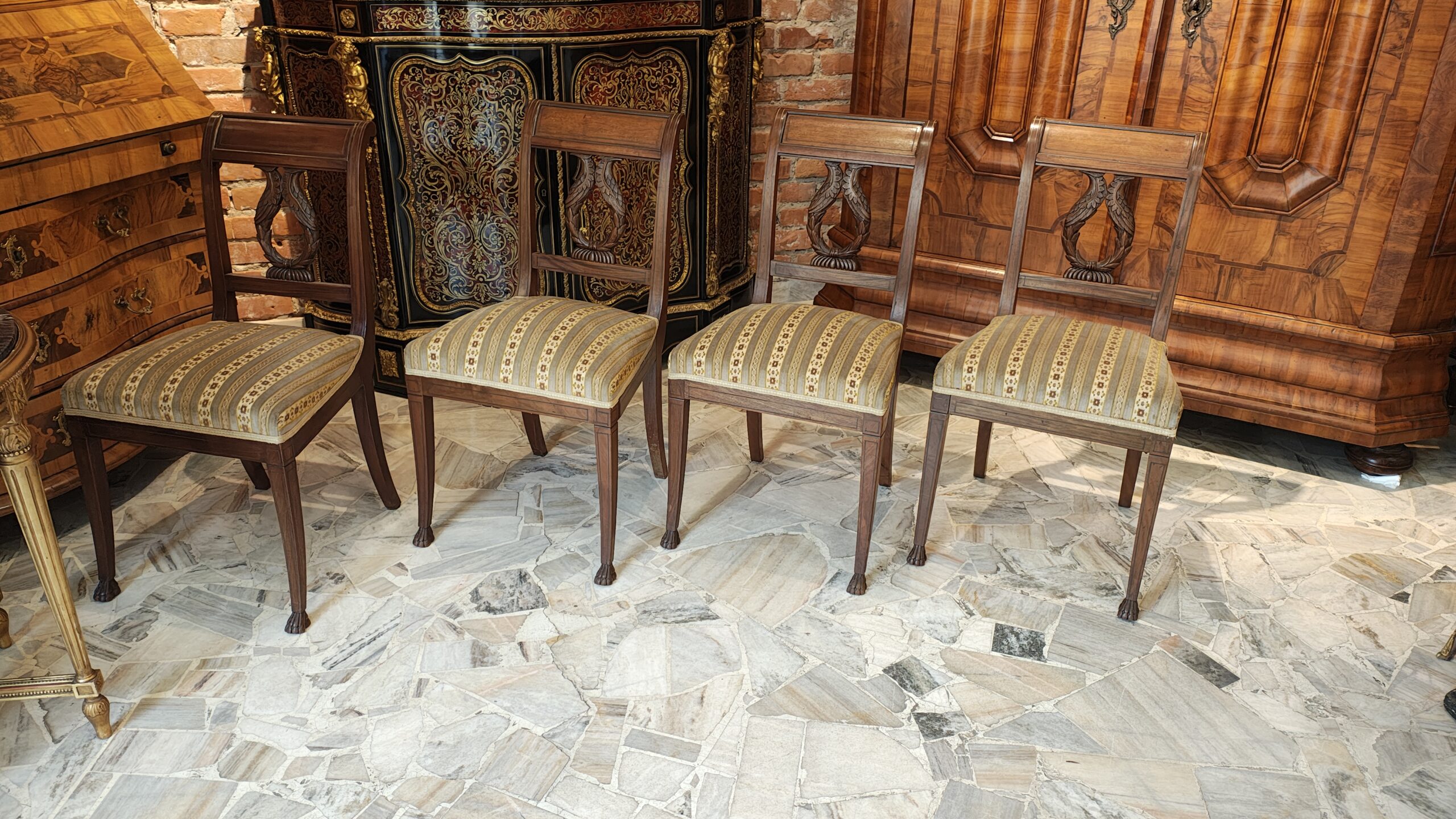 Inkrustowane krzesła 4 szt. z XIX w, Empire około 1830 r obłędne
