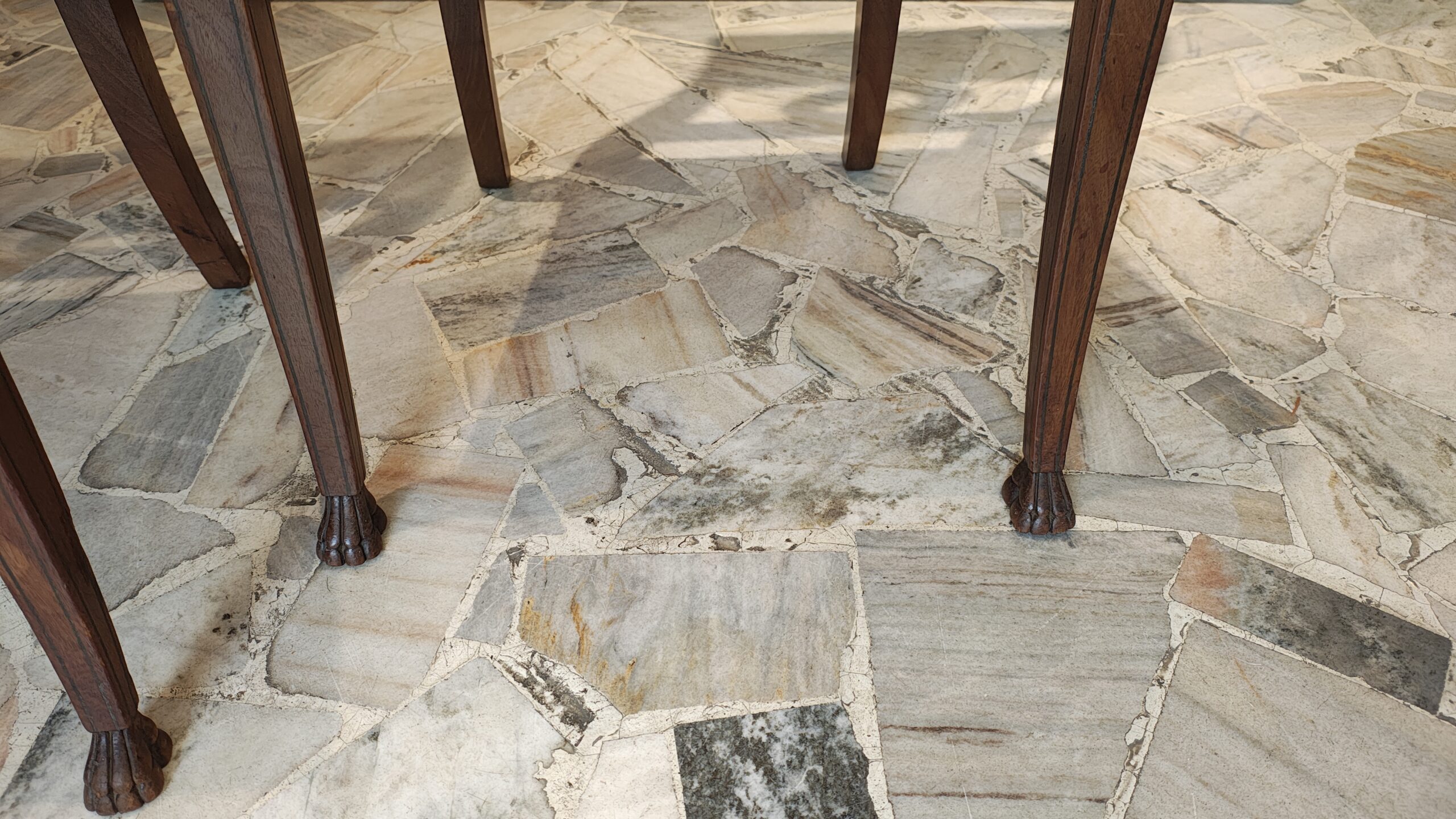 Stan: orginalny, bardzo dobry, orginalny przy jednym z krzeseł minimalny odprysk przy dekoracji