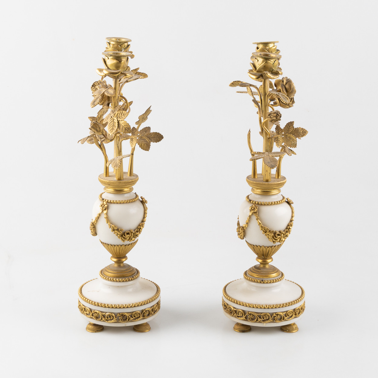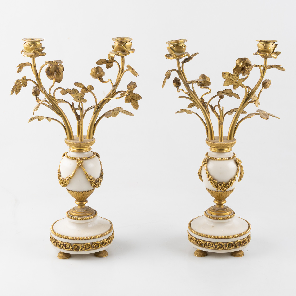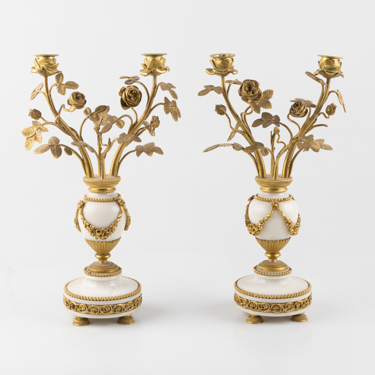 Para 2 świecowych, kandelabrów w manierze Ludwika XVI XIX w około 1870 r