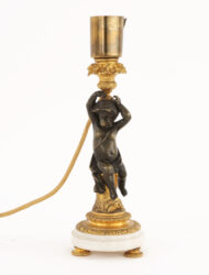 Lampa stołowa z puttem niosącym na głowie kosz obfitości XIX w około 1860 r