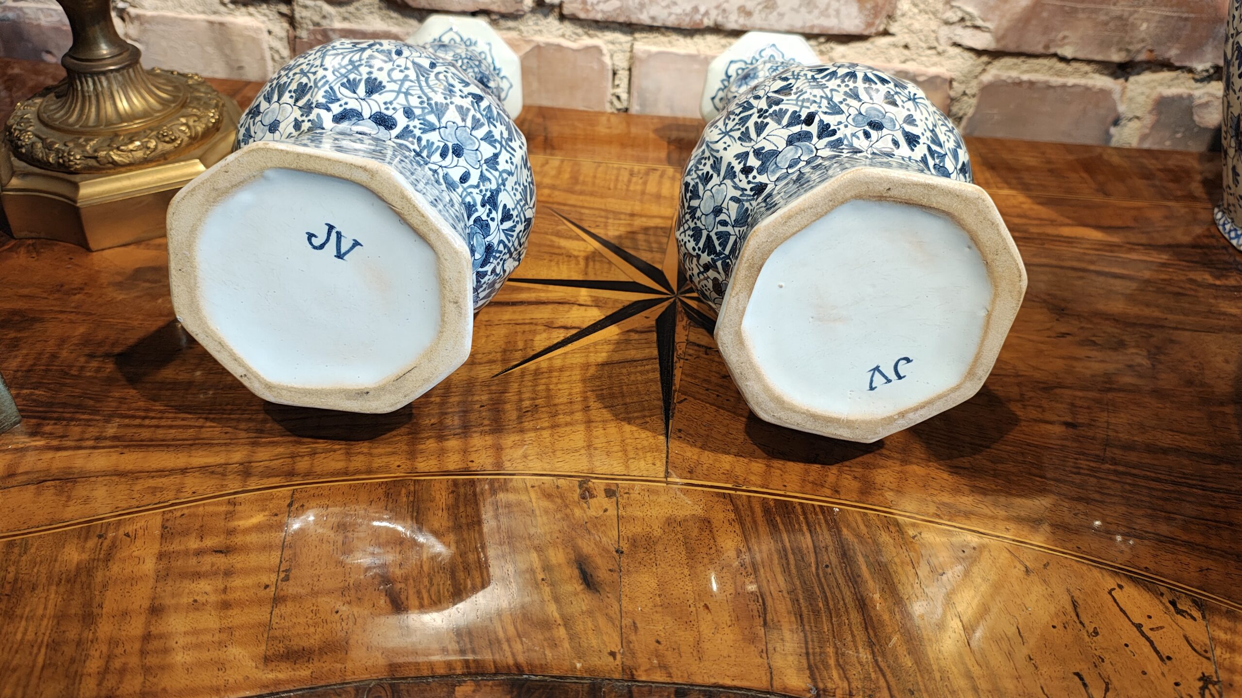 spód wazonu z sygnaturą “JV” wskazuje na, wazy z Delftu, wyprodukowaną przez Julesa Vieillarda.