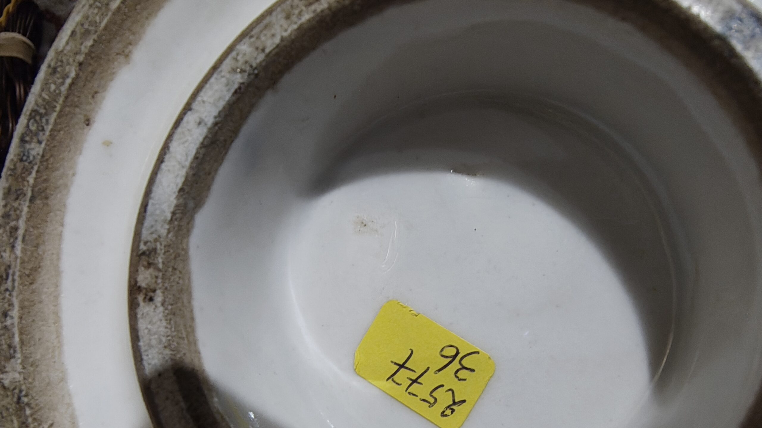 Materiał: Fajans (glina kremowa), kobalt podszkliwny, szkliwo cynowe